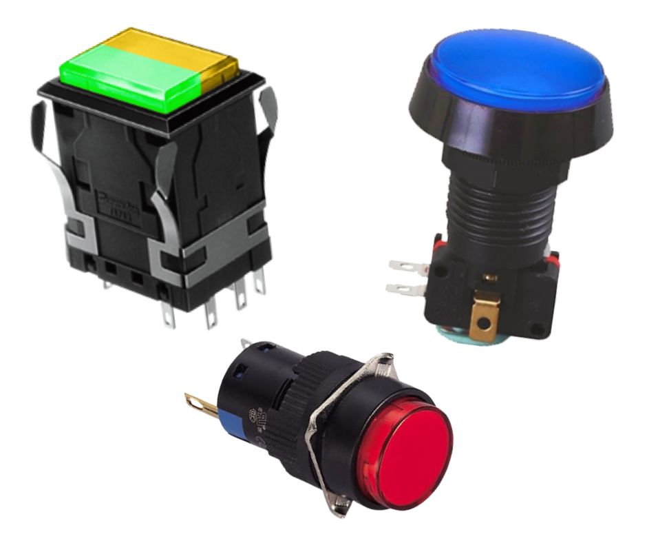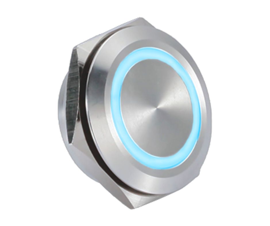 Our LED illuminated panel mount push buttons are a very popular choice within set and prop design, as they are cost-effective and versatile. We have a wide range of switch types available to best suit the specific needs and aesthetic of the application, but two of our most common switch series’ in this category are:
