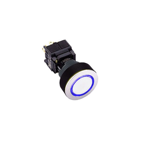 This 16/22mm round push button switch features a plastic actuator with ring LED illumination. It has a momentary/latching function and is IP65 rated (from the front).