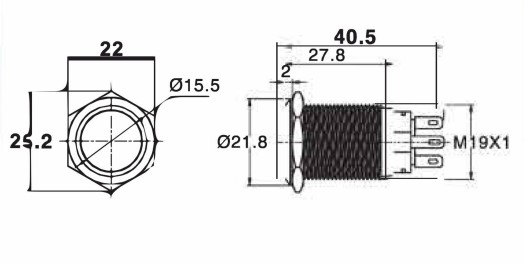| Configuration | 1NC (SPST) [push to break], 1NO (SPST) [push to make], 1NO1NC (SPCO) [change over], 2NC (DPST) [push to break], 2NO (DPST) [push to make], 2NO2NC (DPCO) [change over] |